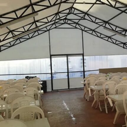 Yemekhane çadırları, şantiye sahaları, sanayi tesisleri, afet bölgeleri ve geçici saha projelerinde toplu beslenme alanlarının hızlı ve güvenli şekilde oluşturulması amacıyla tasarlanan endüstriyel çadır sistemleridir.