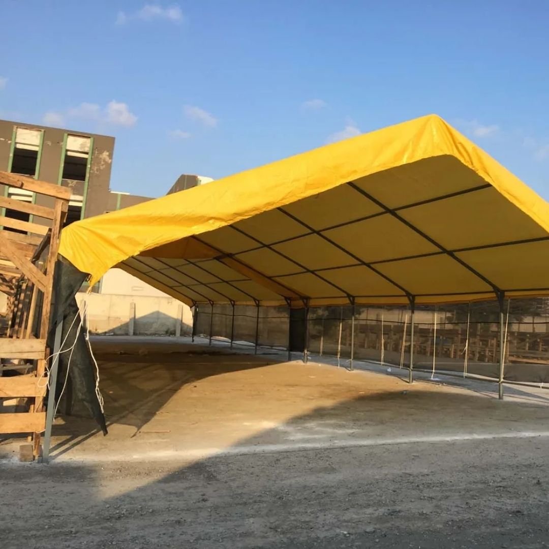 Kurban çadırı; UV korumalı, su geçirmez ve alev yürütmez PVC branda ile üretilir. Galvanizli çelik konstrüksiyon sayesinde uzun ömürlü, ekonomik ve pratik hayvan barınma çözümü sunar.
